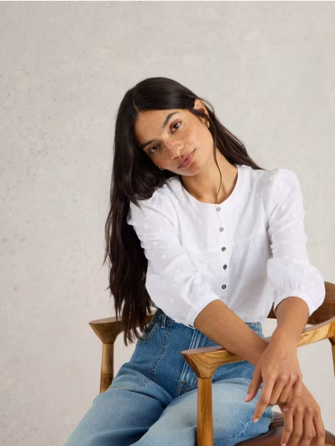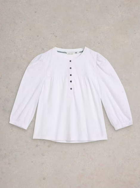 Blouse Elise blanche brodée – Coton bio – White stuff
