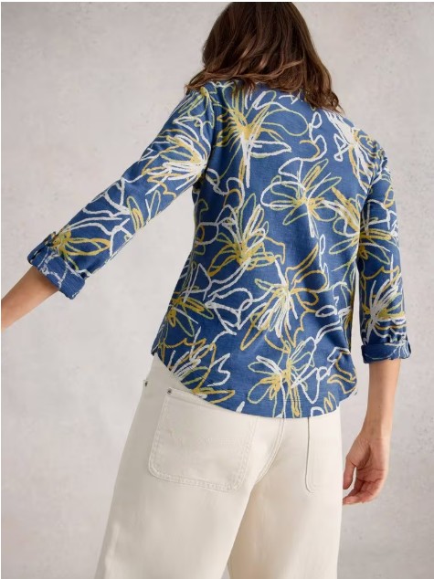 Les manches sont à revers, il est possible de les attacher par un bouton pour les raccourcir.
