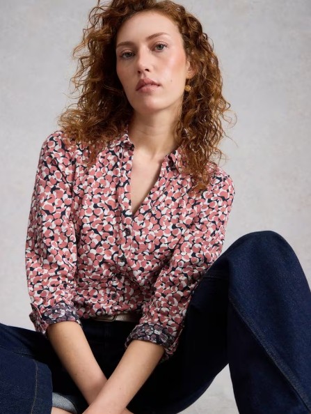 Blouse Annie motifs rose/bleu marine – Coton Fairtrade – White stuff