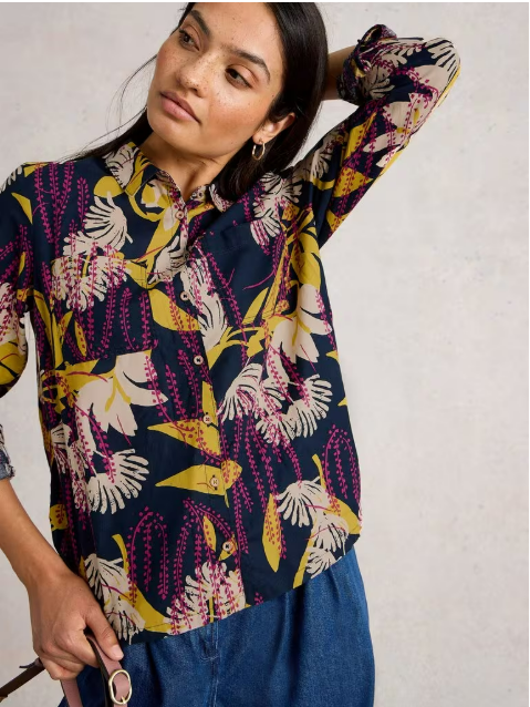 Chemise iconique de chez White Stuff qui revient cette année dans un bel imprimé que vous pourrez facilement associer avec du rose, du bleu marine ou du beige, et bien sûr avec l’indémodable jean.