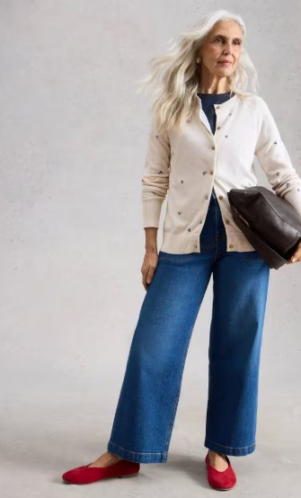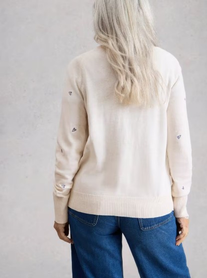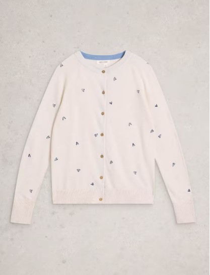 Cardigan Lulu écru brodé coeurs – Coton bio – White stuff