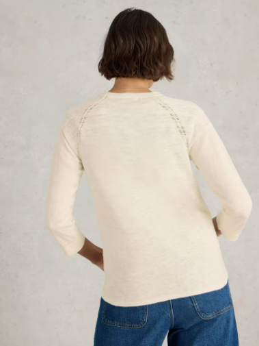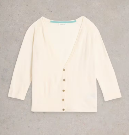 Cardigan Naria ivoire – Coton bio/lin – White Stuff