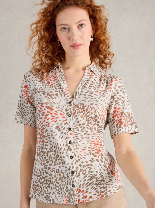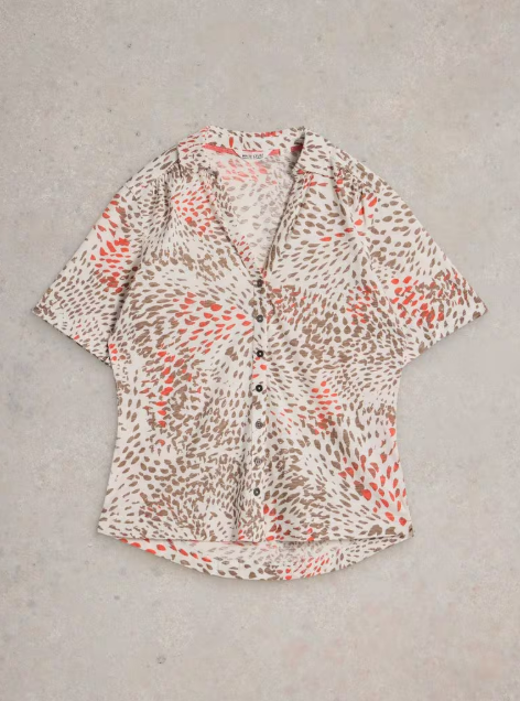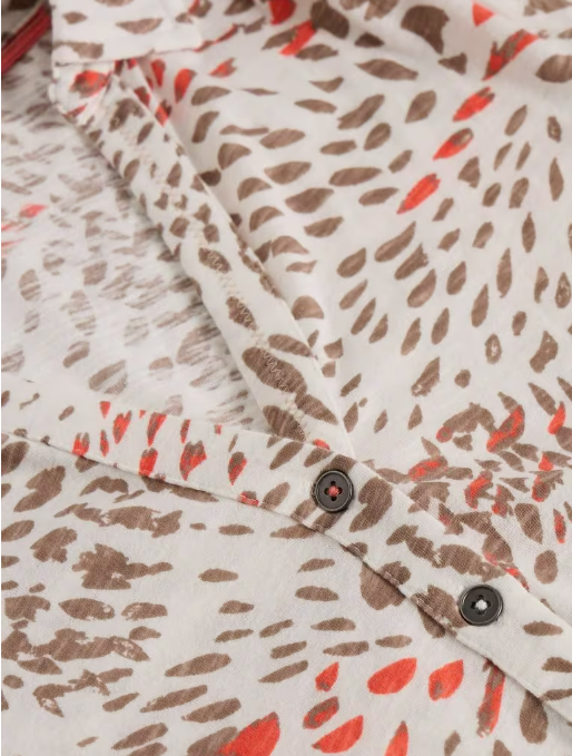 Chemisier style polo, dans un jersey de coton très doux, décoré d’un joli imprimé actuel.