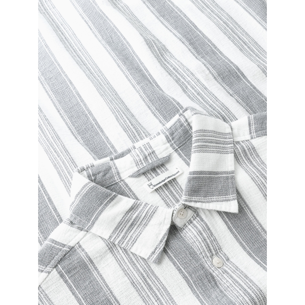 Cette chemise à manches courtes est confectionnée en coton biologique léger, offrant un confort et une respirabilité exceptionnels. Sa coupe décontractée épouse naturellement les formes pour un style facile à porter et décontracté. Le tissage texturé et les rayures verticales lui confèrent une touche d’originalité, tandis que sa fermeture boutonnée et son col classique lui assurent une élégance intemporelle. Parfaite pour les journées chaudes, elle se marie sans effort avec un chino ou un short pour une tenue d’été à la fois raffinée et décontractée.