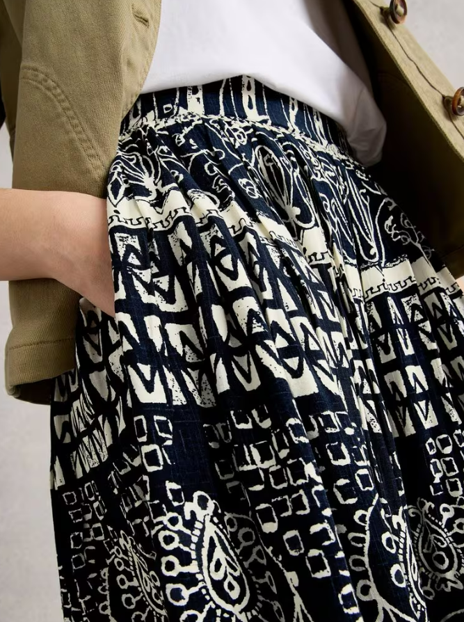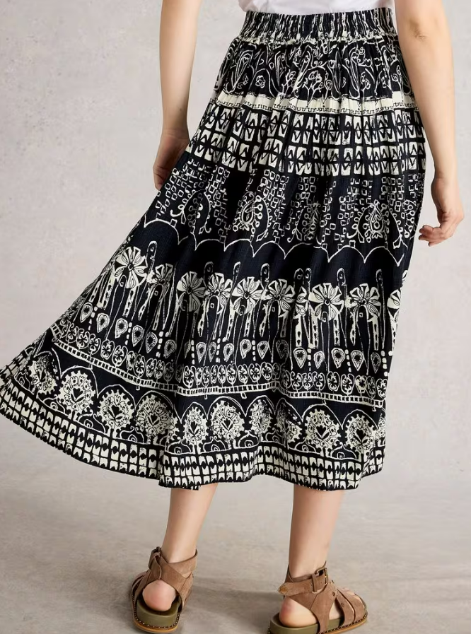 Jolie jupe fluide et ample avec une taille élastiquée et des poches latérales.