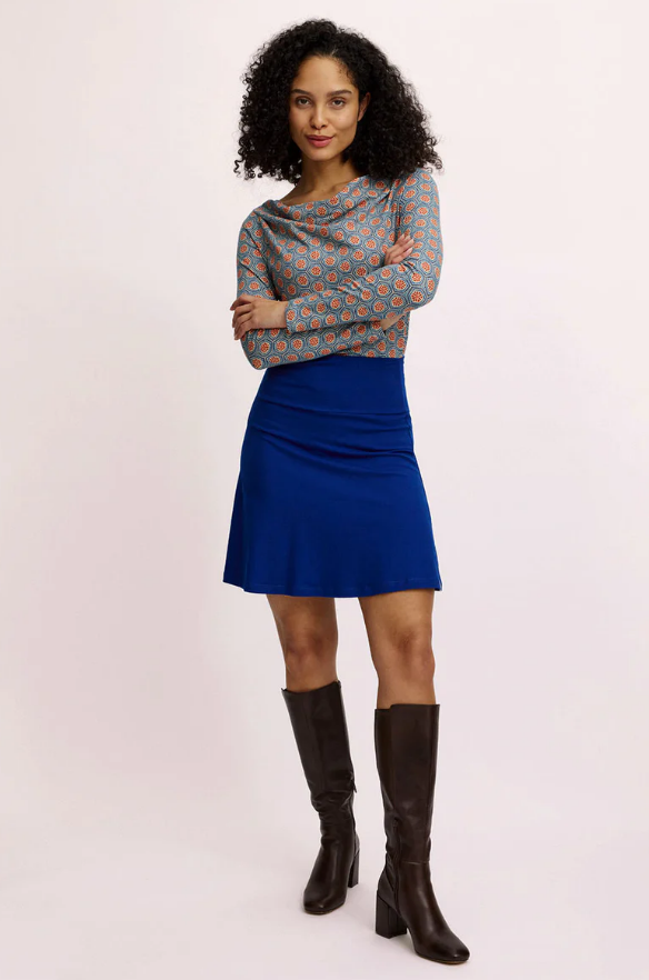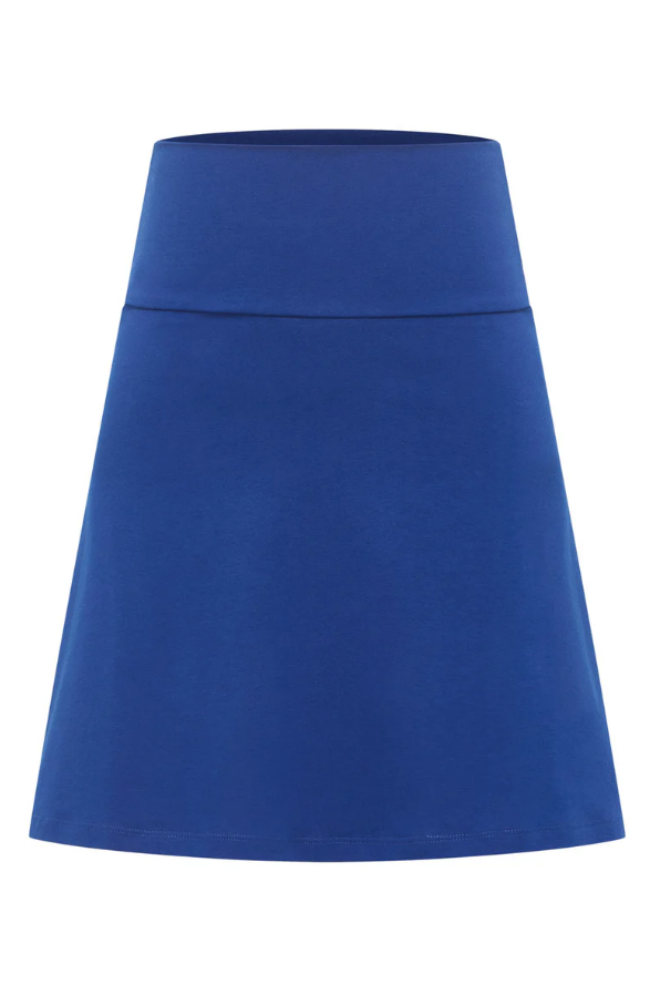 Cette jolie mini-jupe couleur bleu encre, avec une ceinture en jersey confortable, est un classique de Tranquillo.