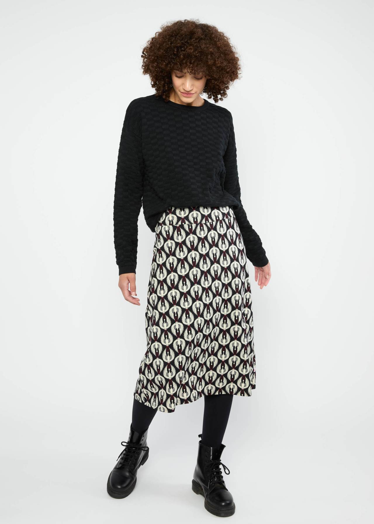 Une très belle jupe confectionnée en jersey de viscose LENZING™ ECOVERO™ au tombé doux et légèrement élasthanne. Elle est douce au toucher, extensible et indéformable.