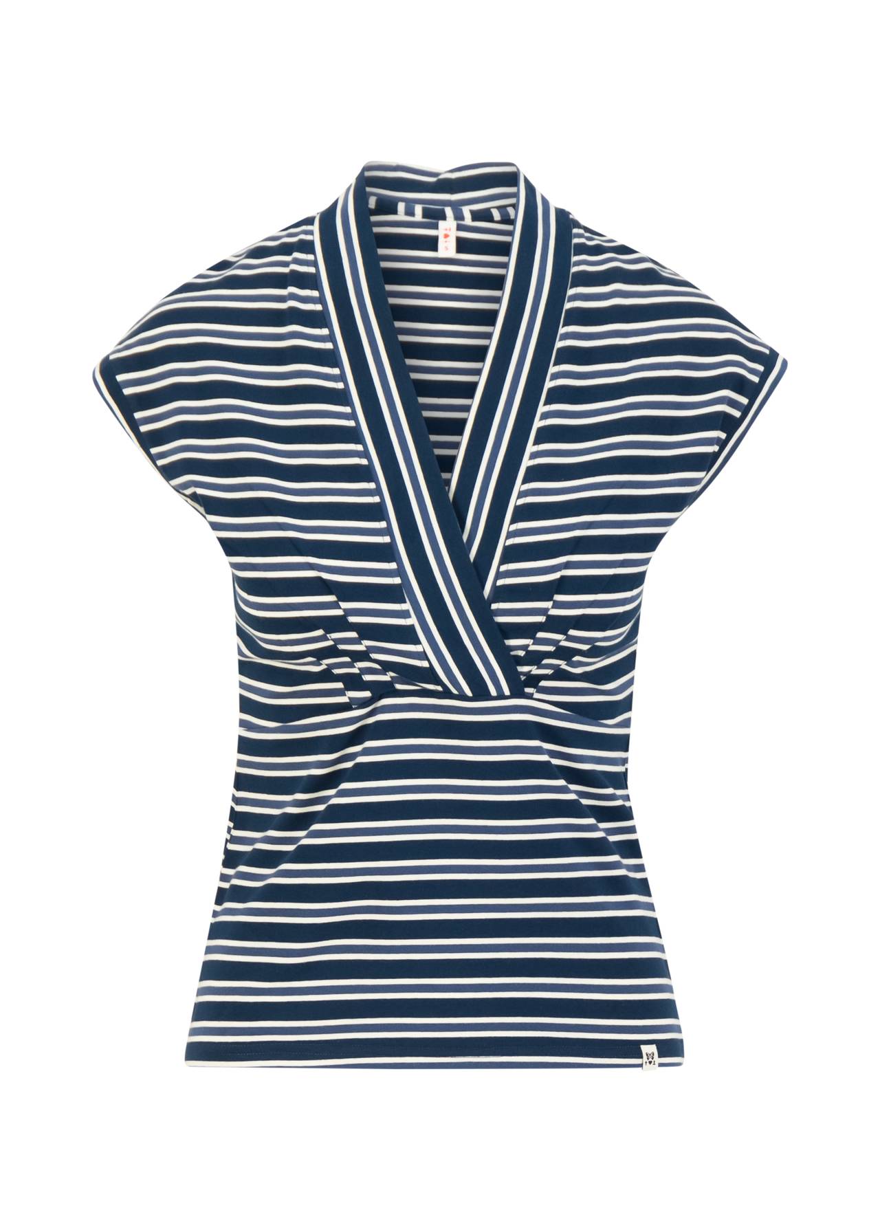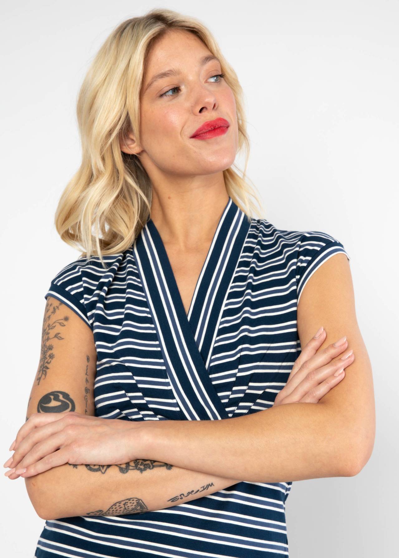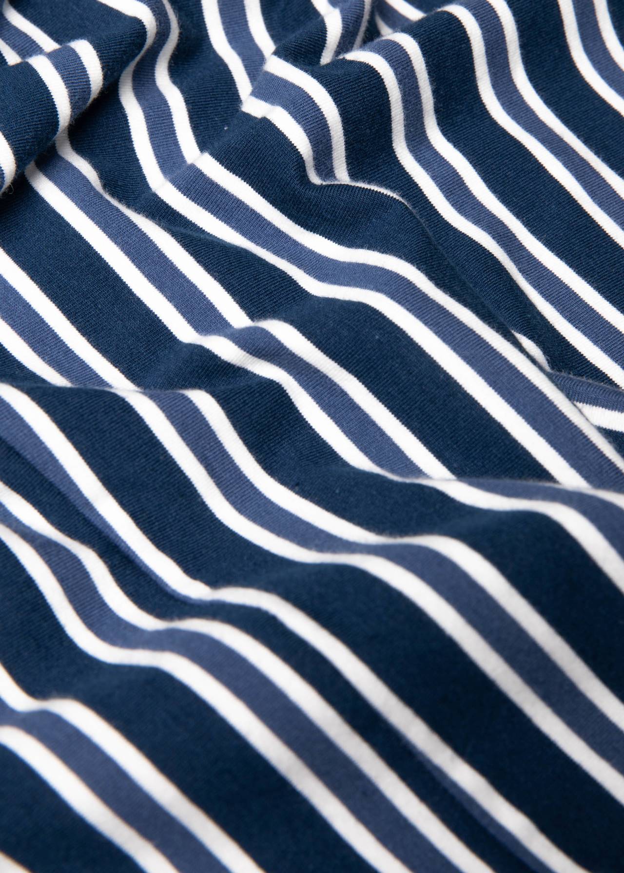 Jolie marinière bleu marine rayée à la coupe ajustée en jersey ultra-doux de coton certifié biologique et écologique.
