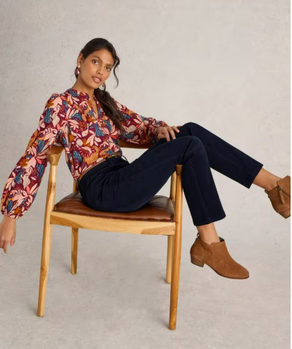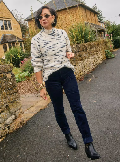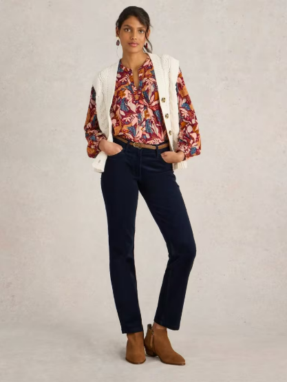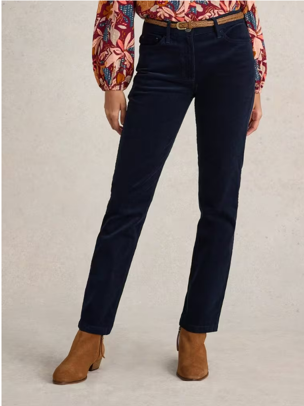 Pantalon droit velours côtelé Brooke bleu marine – Coton bio – White stuff