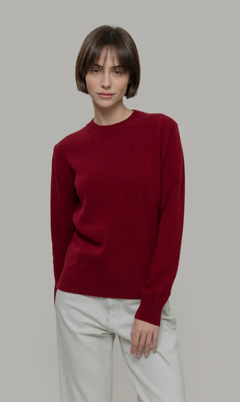 Le pull col rond pour femme Edda, fabriqué à partir de cachemire recyclé, est un vêtement tout doux, léger et confortable. Il est proposé cette année dans une douce couleur bordeaux. Grâce au point jersey et à la coupe régulière, ce pull d’hiver pour femme est parfait pour toutes les occasions. Le col, les poignets et le bas côtelés le rendent enveloppant sans serrer.