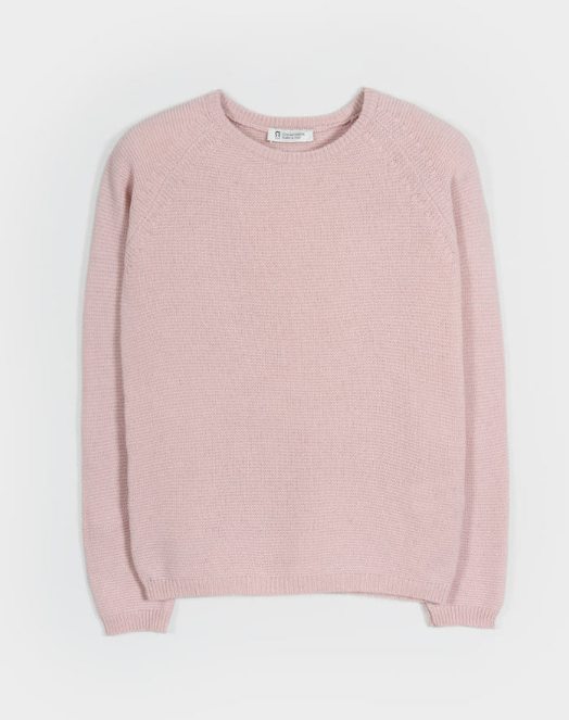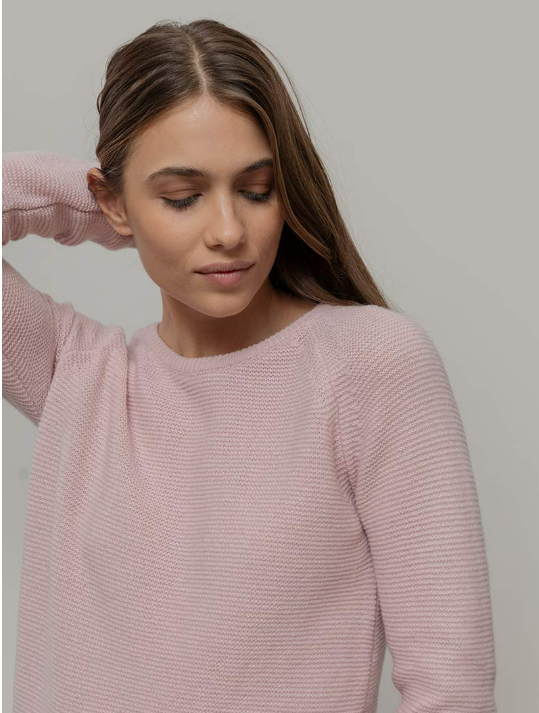 Le pull Giulietta est tricoté dans une jolie maille de couleur rose poudre, douce et chaleureuse.
