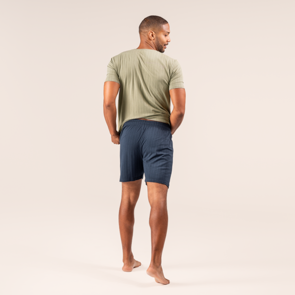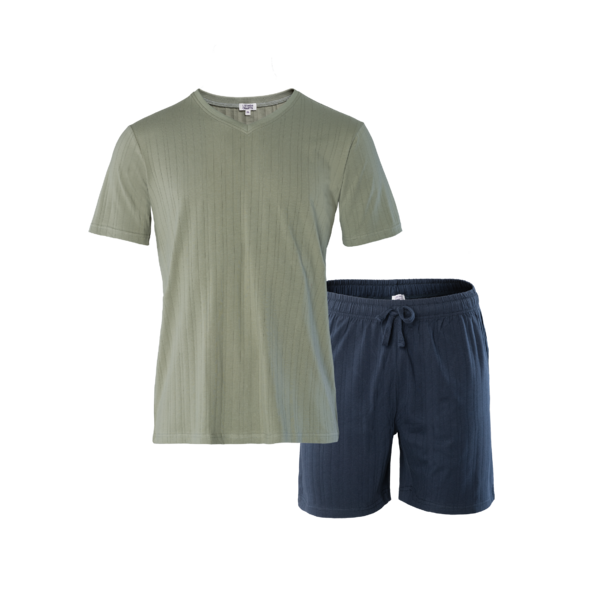 Nouvelle couleur, kaki et short bleu marine, pour ce pyjama homme intemporel, tout coton bio.