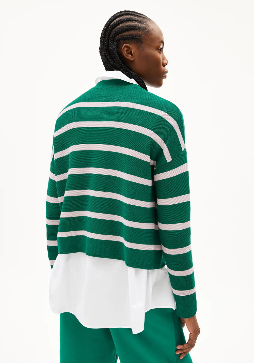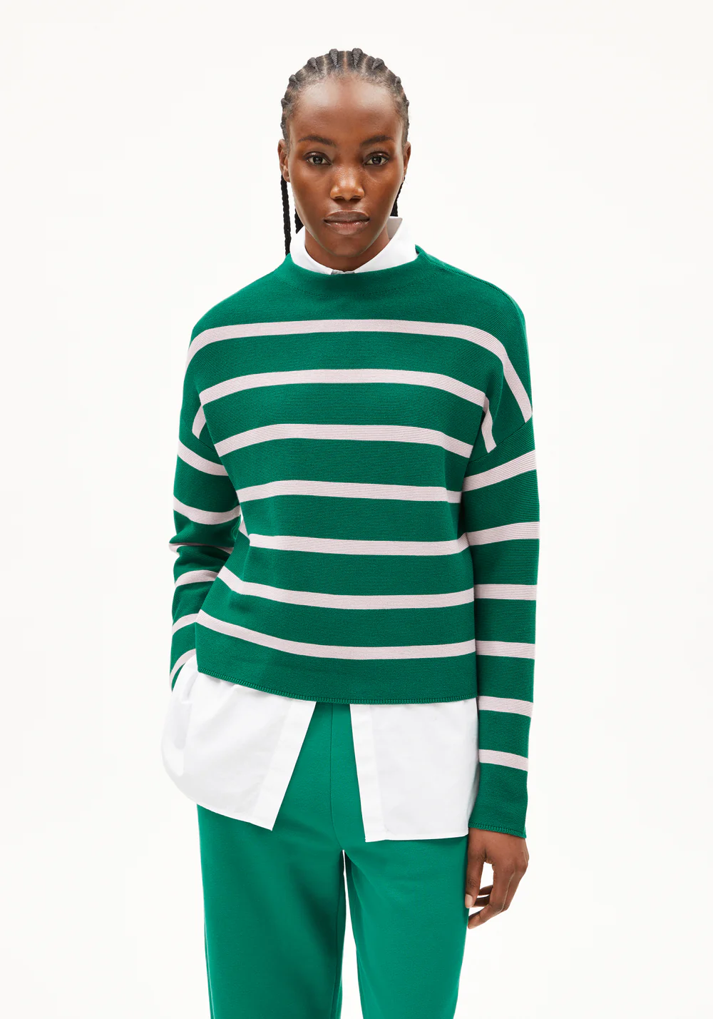 Joli pull ample rayé vert/rose, 100 % coton biologique certifié GOTS