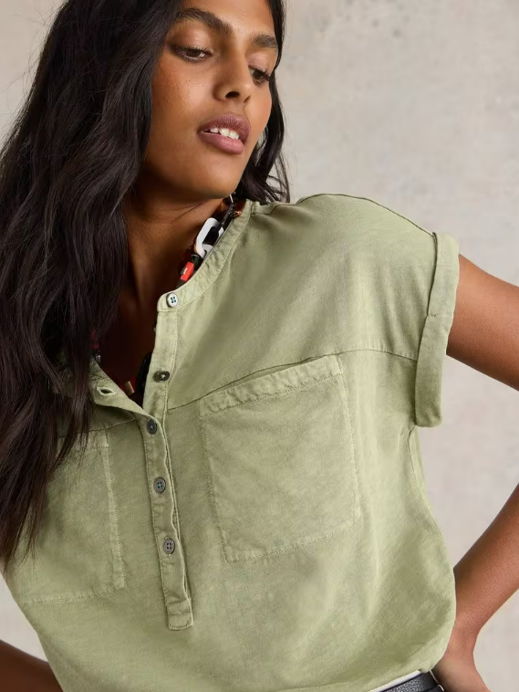 T-shirt Beth kaki – 100 % Coton – White Stuff