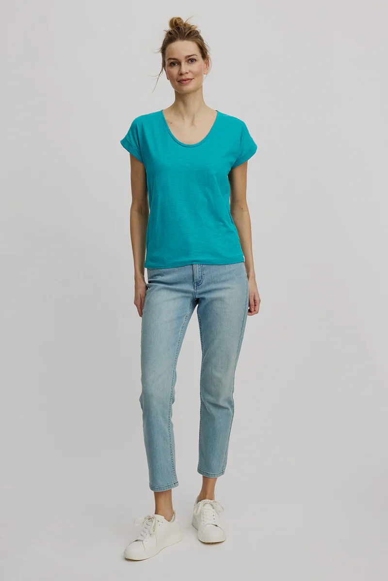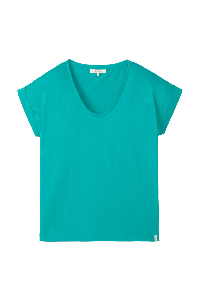 Top col rond bleu turquoise – Coton bio – Tranquillo