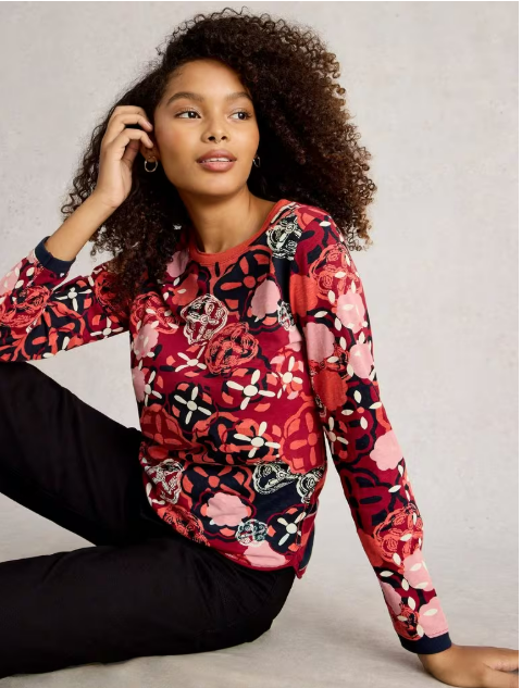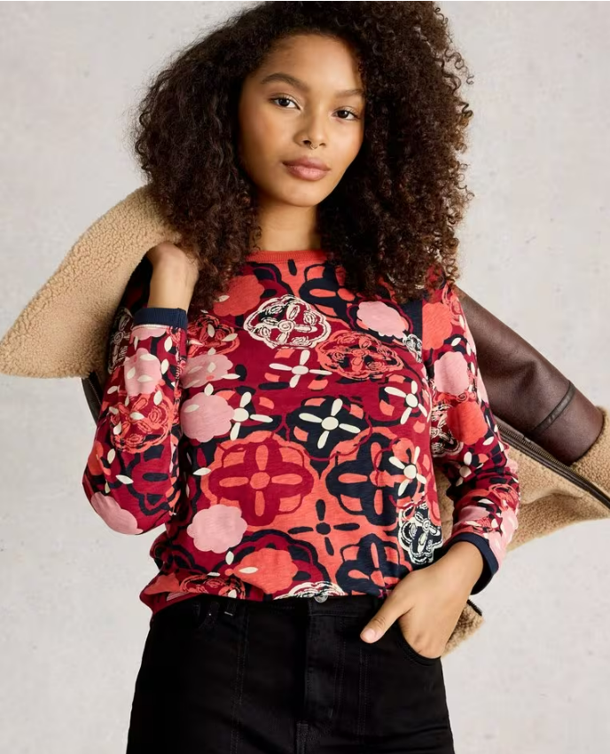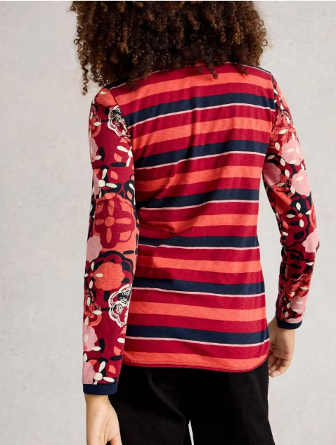Tshirt Clara orange/bleu marine/bordeaux – Coton Fairtrade – White Stuff