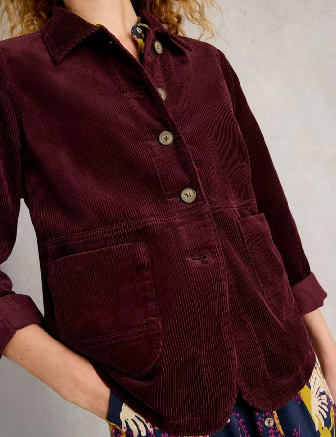 Si vous cherchez la touche finale idéale pour votre tenue, voici peut-être celle-ci. Cette jolie veste en velours côtelé rose cerise est confectionnée en coton biologique doux. Elle se porte à merveille avec un jean large.